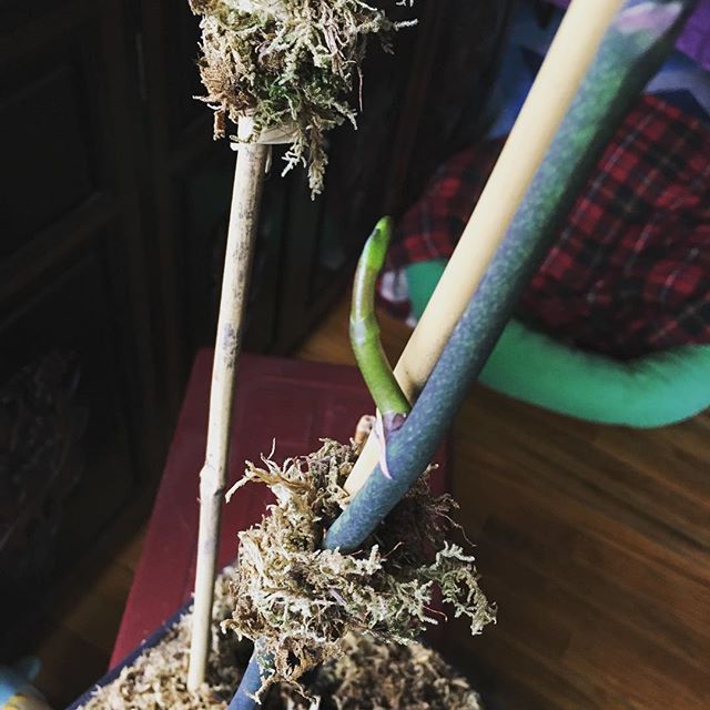 New orchid stem! We picked this orchid out of the neighbors trash. #kaitsgarden #kaitsplantrescue